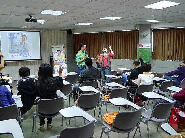 原來老師請大家注意台上人的發言,如有贅詞贅字(那、然後等等)就要舉手反應。