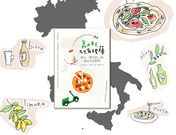 誠如這本書名所說的,內文中悠悠地道出了慢半拍的義式哲學